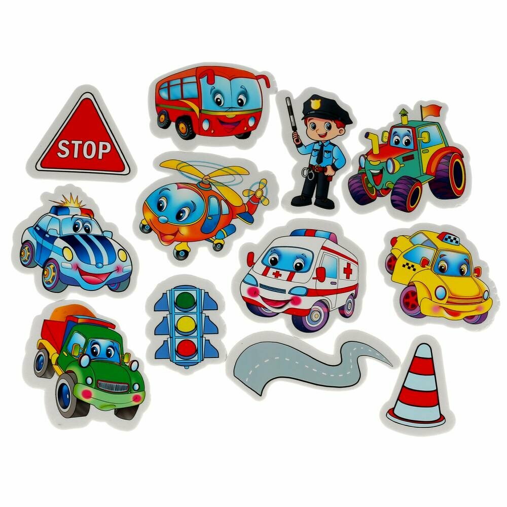 Стикеры с изображением весёлых машинок, регулировщика и дорожных знаков привлекут внимание и поднимут настроение малышу.