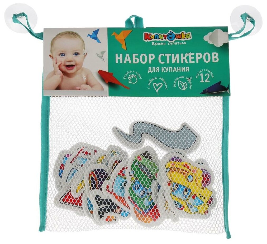 Капитошка Игрушка для ванны Набор стикеров Машинки 12 шт.