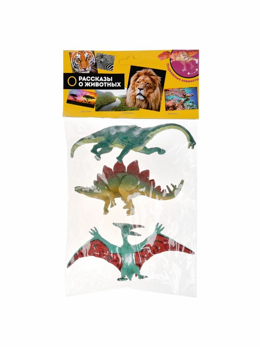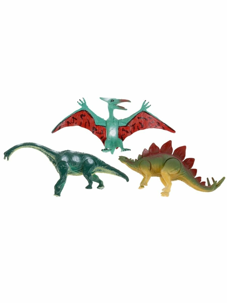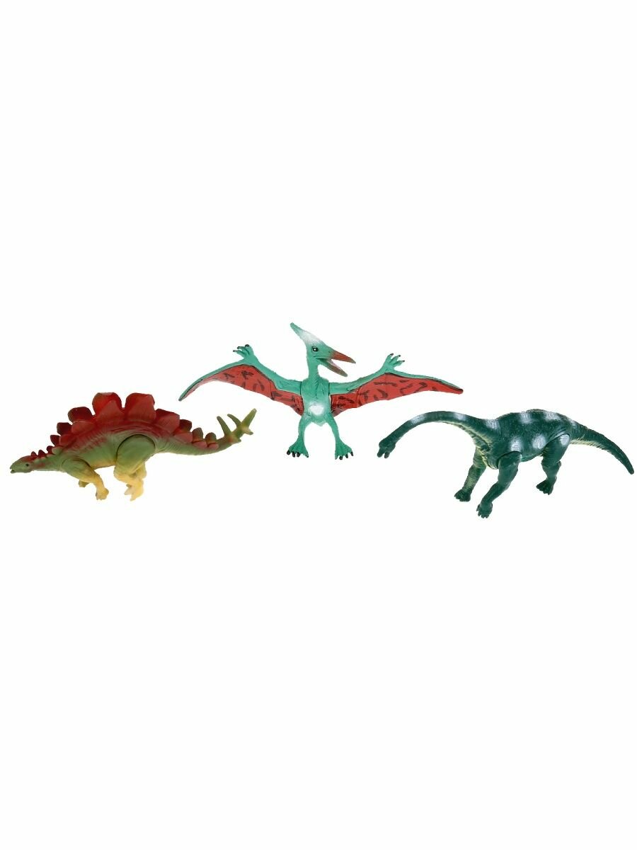 Добро пожаловать в волнующий и загадочный доисторический мир. В нём вас и вашего ребёнка ожидает встреча с 3 игрушками-динозавриками.