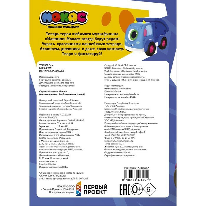 На сегодняшний день товар «Книга: Машинки Мокас. Альбом наклеек (синий) (Фонд исследований исламской культуры); АСТ, 2022» можно купить с кешбеком в 4 магазинах: book24, Буквоед, Читай-город, Яндекс.Маркет