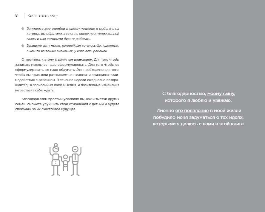 Книга выполнена в формате тренинга — упражнения помогут проанализировать существующие отношения с детьми и избежать ошибок в будущем.