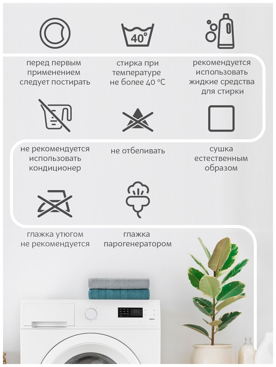 Натуральная ткань из 100% хлопка. При её создании пряжа проходит дополнительный этап расчесывания волокон, в результате получается мягкое и нежное махровое полотно, которое отлично впитывает влагу. При производстве используются стойкие красители из Швейцарии: они безопасны для здоровья и сохраняют яркость цвета даже после многократных стирок.