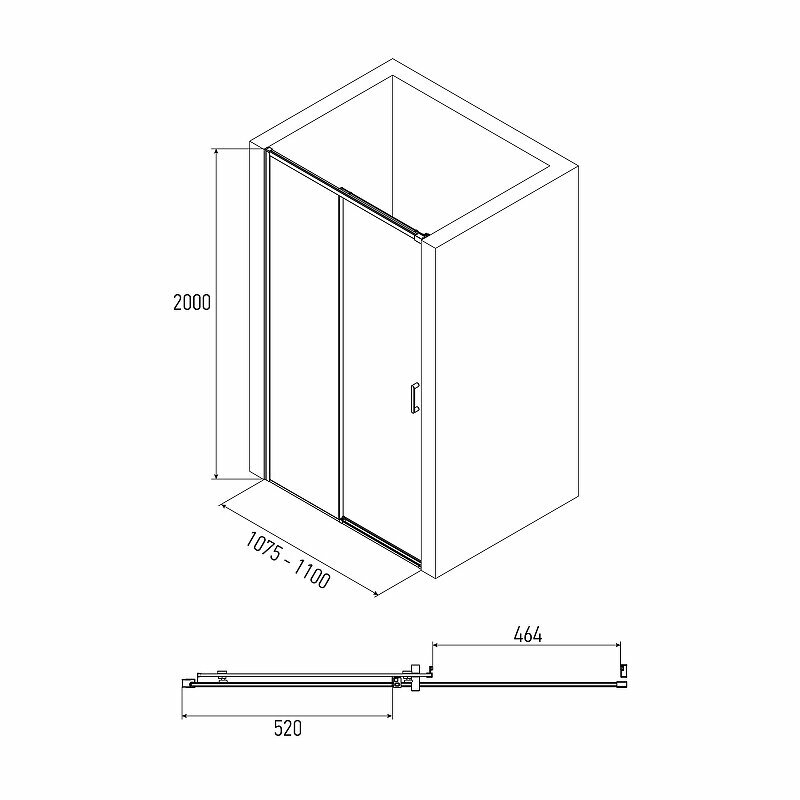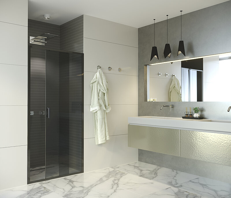 Душевая дверь Alex Baitler 110 AB64B110 профиль Черный стекло тонированное
