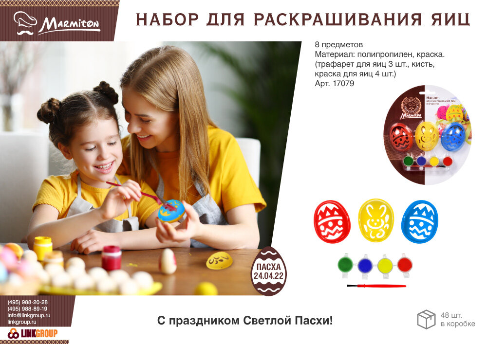 набор для раскрашивания яиц marmiton 8пр.:трафарет для яиц 3шткистькраска для яиц 4шт 17079