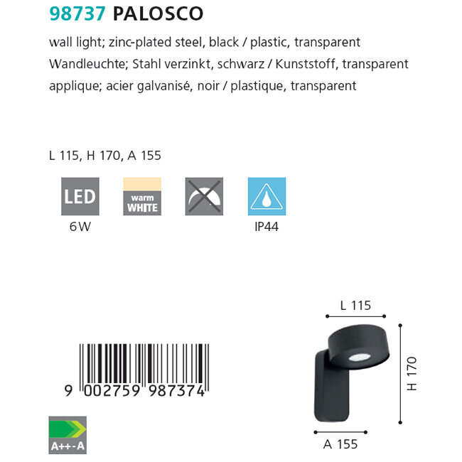 - Уличная коллекция светильников PALOSCO - 98737 98738 98739 EGLO