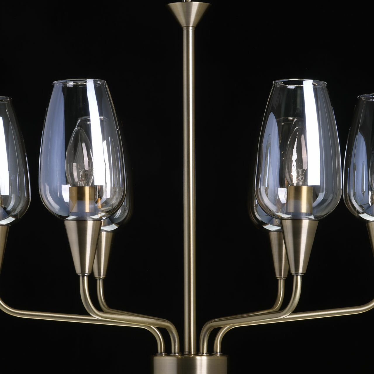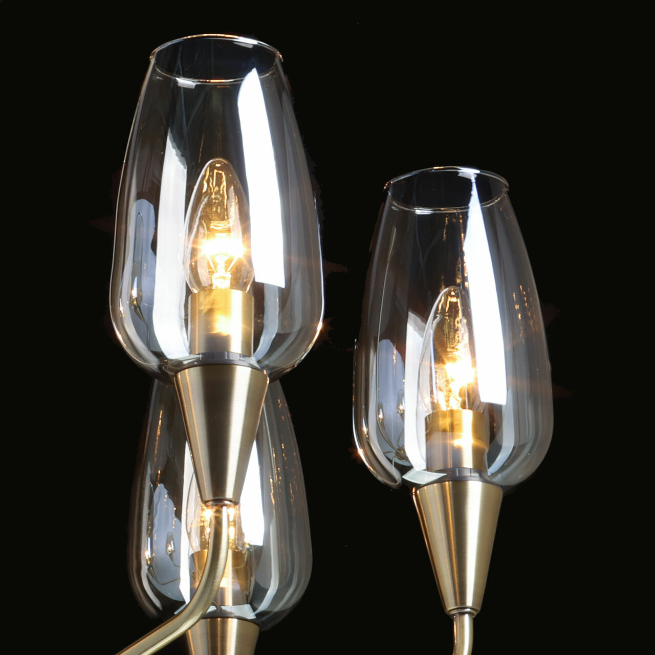 Основание светильника выполнено из металла и гальванизировано в цвет бронзы. Светильник декорирован оригинальными плафонами с градуированной гальваникой дымчатого цвета.