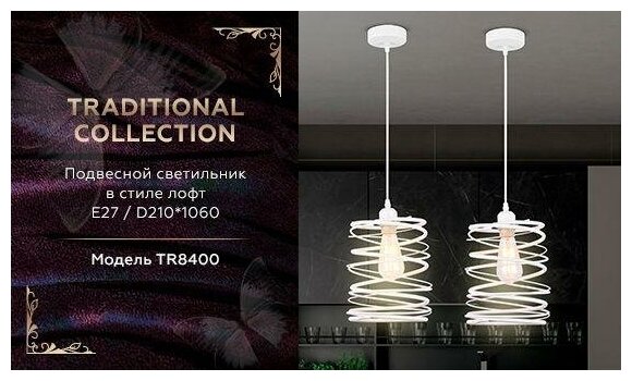 | Номенклатура | TR8400 WH белый E27 max 60W D210*1060 |