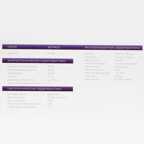 | Цвет плафона | белый |