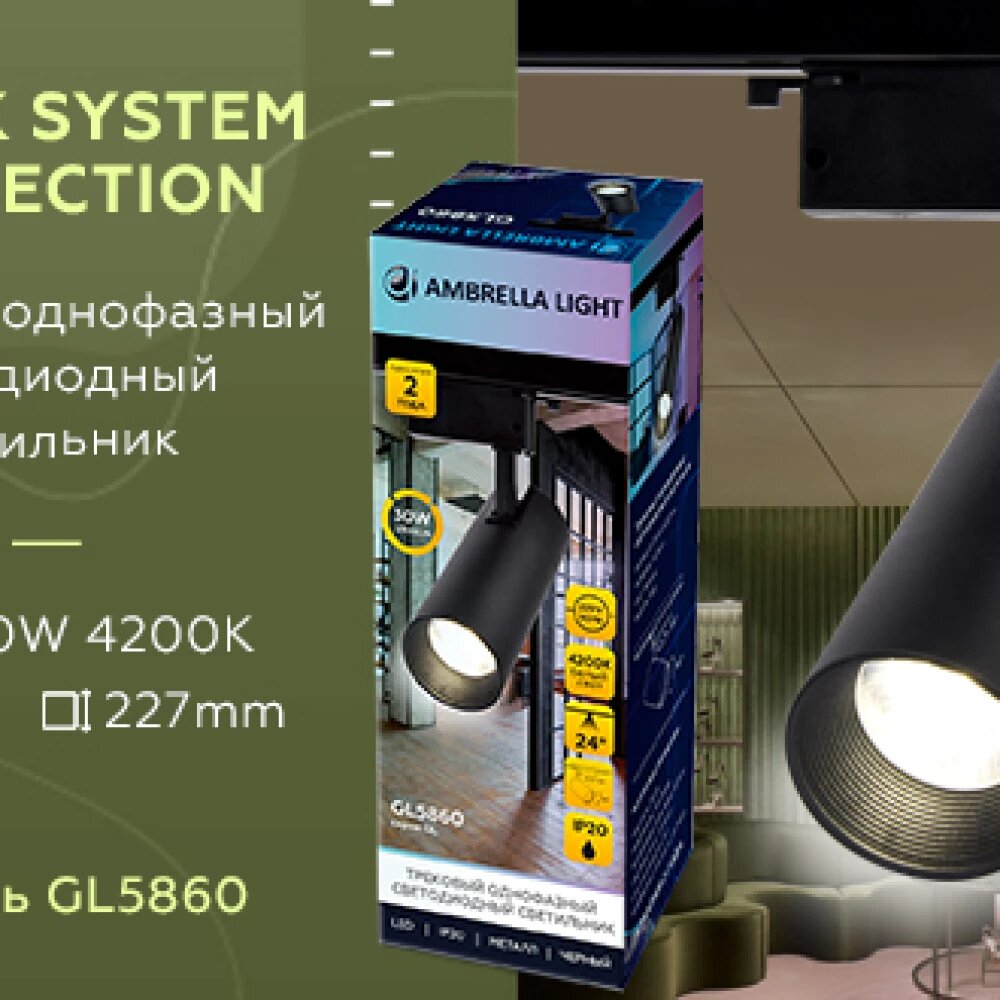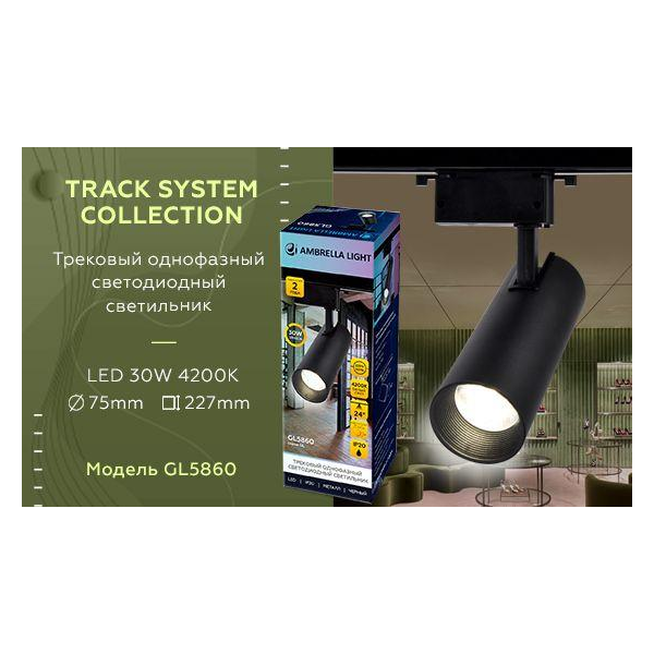 Трековый однофазный светильник TRACK SYSTEM Ambrella light GL5860