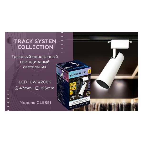 Трековый однофазный светильник TRACK SYSTEM Ambrella light GL5851