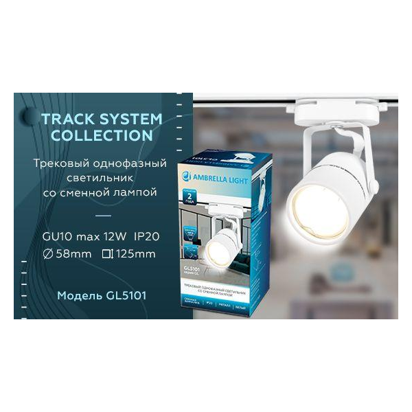 Трековый однофазный светильник TRACK SYSTEM Ambrella light GL5101