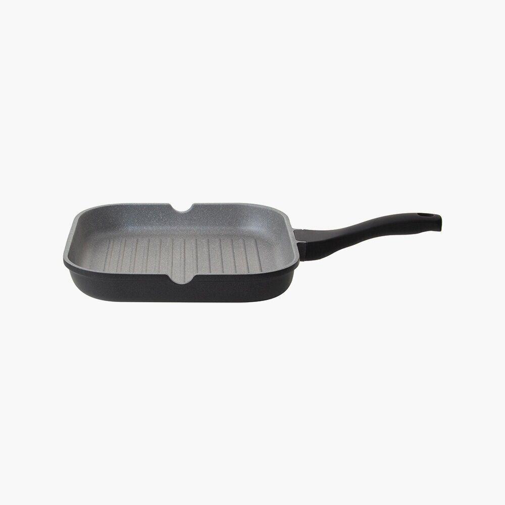 Сковорода-гриль NADOBA GRANIA изготовлена из литого алюминия. Особо прочное 5-слойное антипригарное покрытие ILAG Granitec, усиленное минералами, обуславливает исключительно долгий срок службы изделия даже при ежедневном использовании. Массивный корпус данной модели обеспечивает равномерный нагрев всей поверхности посуды и не деформируется при нагревании. Бакелитовая рукоятка эргономичной формы оснащена противоскользящим покрытием, предотвращающим выскальзывание из рук. Такая сковорода идеально подходит для жарки стейков из любого мяса и рыбы