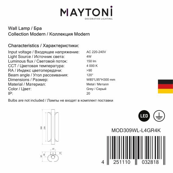 Бра Maytoni Interstellar MOD309WL-L4GR4K