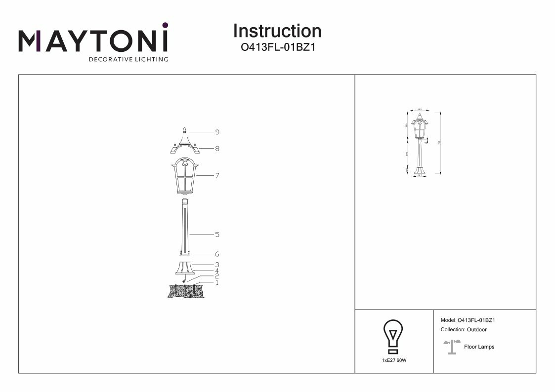 Уличный светильник Maytoni Albion O413FL-01BZ1