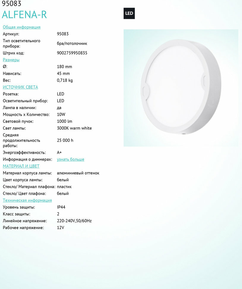 По данным нашего сервиса товар предлагался к продаже в 11 магазинах. На сегодняшний день доступен в 1 магазине: donplafon. По цене от 2090 р. до 2090 р. В случае, если для вас на данный момент цена слишком высока, вы можете воспользоваться сервисом «Сообщить о снижении цены» - мы оповестим вас как только цена опустится до желаемого значения. Но будьте внимательны, используя сервис «История цены» можно спрогнозировать в какую сторону изменяется цена, возможно сейчас самое время для покупки.
