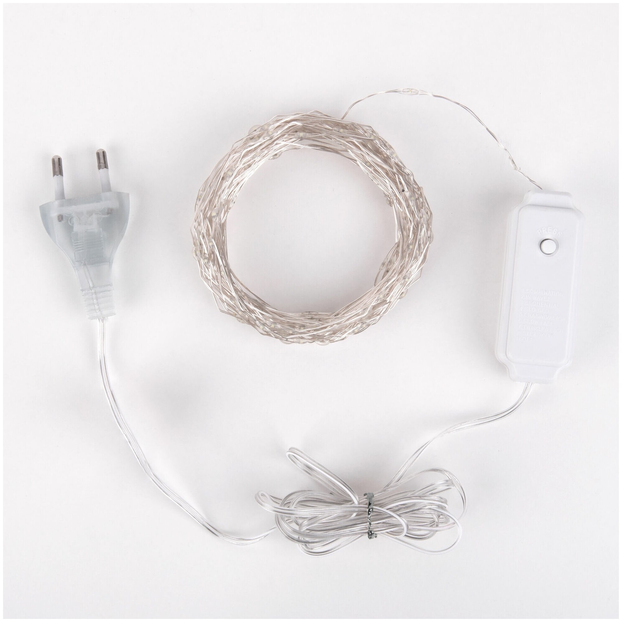 Гирлянда имеет 8 режимов свечения, переключение происходит последовательно нажатием кнопки на контроллере.