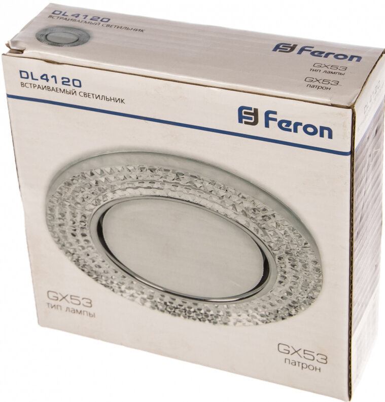 Встраиваемый светильник Feron 40516. Хорошо впишется в любой интерьер. Размеры 12x12x2.5 cm. Материал/цвет арматуры стекло/хром. Использует лампу с цоколем GX53. Страна происхождения бренда — Россия.