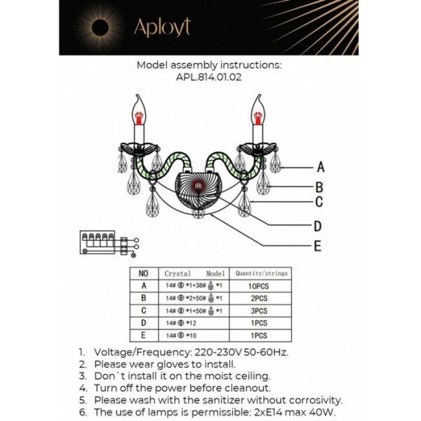 | Декор | хрустальные подвески |