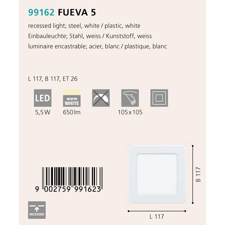 Встраиваемый светильник Eglo FUEVA 5 99162