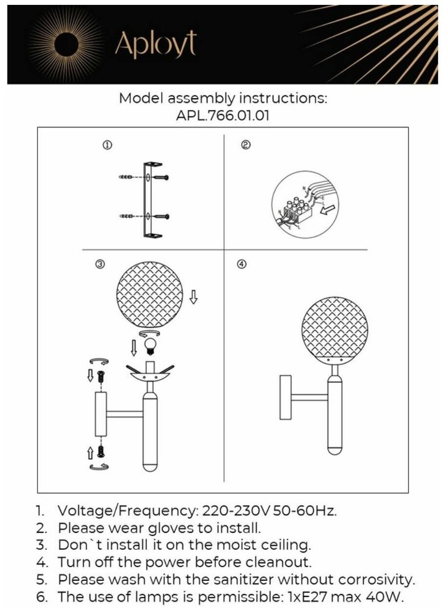 | Максимальная допустимая мощность лампы (Вт) | 40 |
