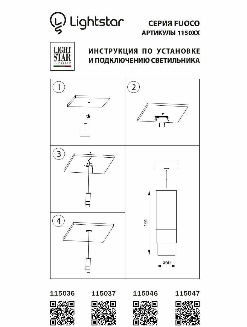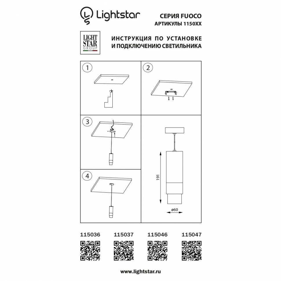 Светильник Lightstar 115037 серии Fuoco. Даст комфортный свет в комнате. Высота 19.1 cm. Диаметр 6 cm Параметры пылевлагозащиты IP — 20. Плафон металлический черного цвета, а материал/цвет арматуры металл/черный. Страна происхождения бренда — Италия.