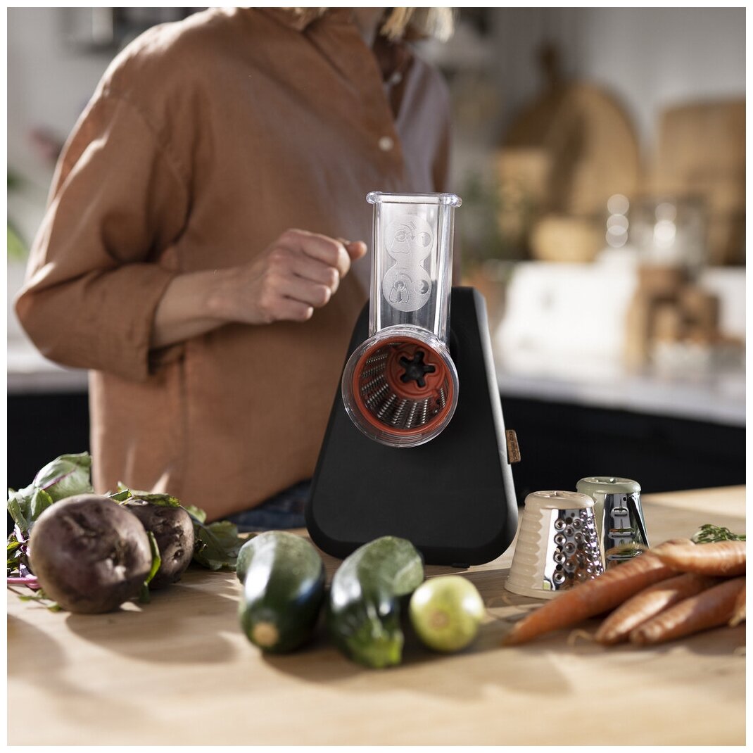 | Наслаждайтесь легкой подготовкой овощей с овощерезкой Eco Respect С системой насадок-конусов различных цветов электрическая овощерезка Eco Respect от Moulinex будет вашим незаменимым помощником на кухне, который может натирать, нарезать и измельчать такие ингредиенты, как овощи, фрукты, сыр, шоколад и многое другое для любимых рецептов | свежие и вкусные салаты, аппетитные овощные оладьи, хрустящие картофельные драники. С большим загрузочным отверстием вам не придется нарезать продукты заранее. Благодаря легкой в очистке и хранении конструкции компактная овощерезка станет превосходным дополнением к любому кухонному интерьеру. |
