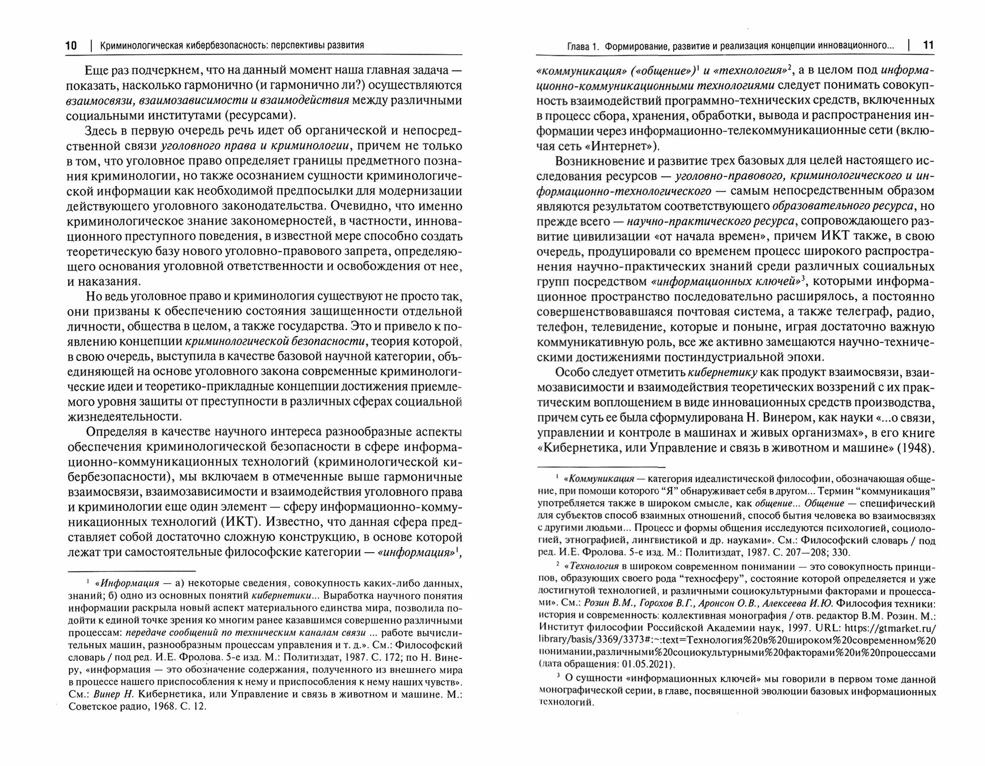 В монографии рассматриваются перспективы развития и реализации концепции обеспечения защиты личности, общества и государства от посягательств, культивируемых в киберпространстве. Предлагаются пути оптимизации использования инновационных информационно-коммуникационных ресурсов в системе криминологического и уголовно-правового контроля над традиционной и киберпреступностью. Обосновываются перспективы реализации цифровых технологий в обнаружении и фиксации правонарушений, совершаемых в реальном и виртуальном пространствах, а также в пресечении, раскрытии и расследовании традиционных и киберпреступлений. Определяются предпосылки формирования и развития инновационной информационно-коммуникационной системы предварительного расследования преступлений, отправления правосудия и в целом информационно-технологического обеспечения криминологической безопасности. Оцениваются этические аспекты взаимодействия человека и искусственного интеллекта в контексте обеспечения кибербезопасности.