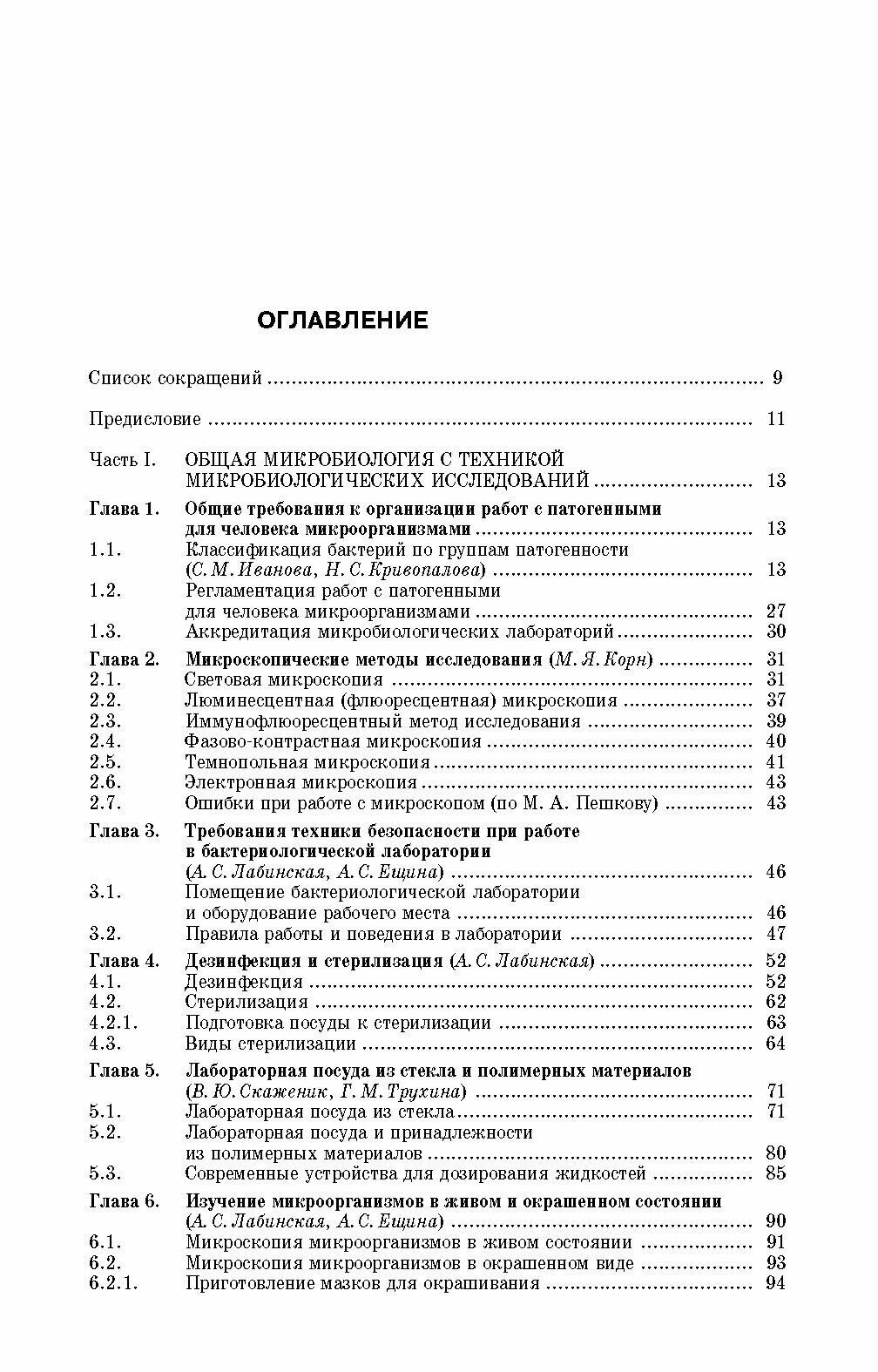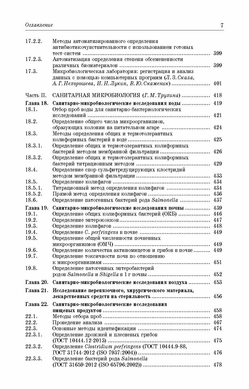 В пособии освещены вопросы общей и санитарной микробиологии. Описаны требования по технике безопасности, методы дезинфекции и стерилизации, манипуляции с экспериментальными животными. Дана информация об оснащении бактериологической лаборатории и методах микробиологии, технике выращивания и изучения микроорганизмов в живом и окрашенном состоянии, приготовлении питательных сред, изучении антибиотикоустойчивости, дифференциально-диагностическом тестировании. Включен материал по бактериофагам, генетике бактерий, идентификации микроорганизмов с помощью ПЦР, об иммунитете и методах его оценки. Особое место занимают главы о физиолого-биохимических свойствах микроорганизмов и современных технологиях, применяемых в клинической микробиологии. Рассмотрены основные задачи и методы санитарно-микробиологических исследований воды, почвы, воздуха, пищевых продуктов, перевязочных средств и т. д.