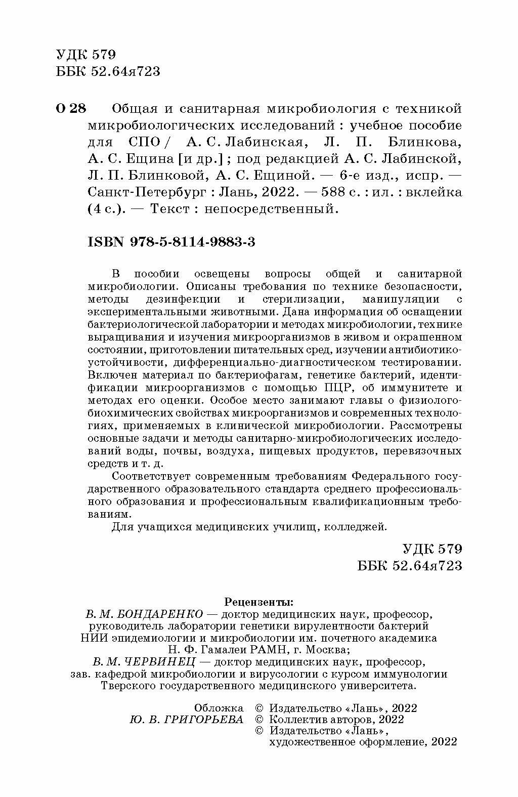 Общая и санитарная микробиология с техникой микробиологических исследований (Лабинская Ариадна Семеновна, Блинкова Лариса Петровна, Ещина Алла Семеновна); Лань, 2022