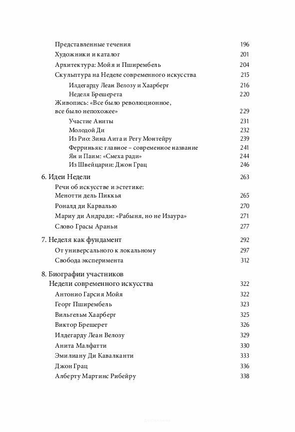 Первое русскоязычное издание легендарного искусствоведческого исследования. Практически детективное расследование арт-критика, искусствоведа, преподавателя Араси Амарал об истоках бразильского современного искусства. Переизданный на родине, в Бразилии, уже шесть раз, научный труд был впервые опубликован в 1970 году. При подготовке текста Араси ездила по всей стране, чтобы лично побеседовать с непосредственными участниками тех событий и собрать документы и свидетельства эпохи. О каких же событиях речь? Речь идет о трех февральских днях 1922 года, когда бразильское искусство получило шанс стать по-настоящему бразильским. Группа модернистов, расположившись в лобби Муниципального театра Сан-Пауло, шокировала, провоцировала и изумляла весь город. О подготовке, о самом событии и о том, какое влияние оно оказало на национальное искусство, читайте в фундаментальном научном расследовании, написанном живым и нескучным языком.