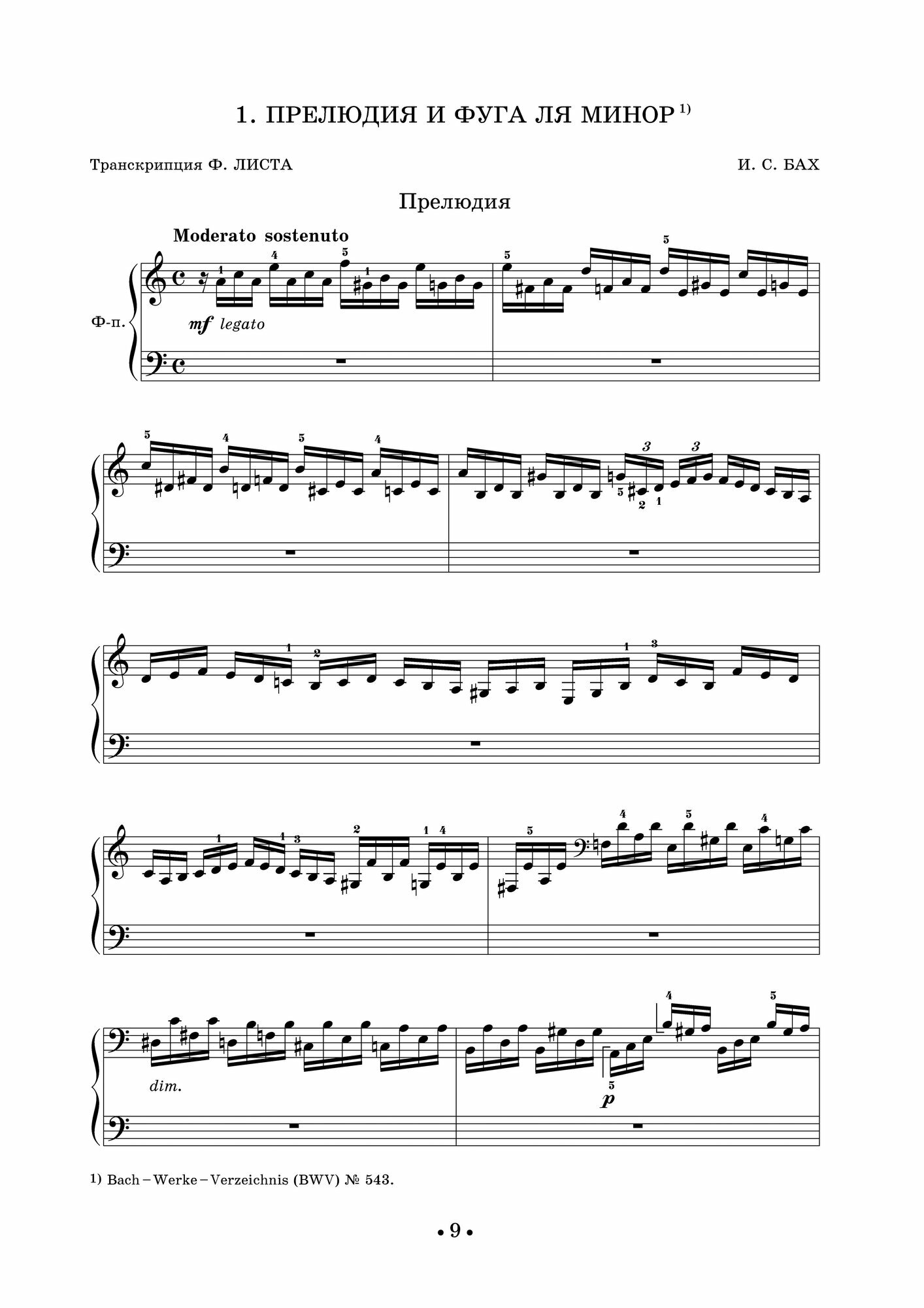 В своих шести фортепианных транскрипциях больших органных прелюдий и фуг И. С. Баха Ф. Лист поставил перед собой задачу познакомить широкие круги пианистов с гениальной музыкой великого полифониста, известной ранее лишь специалистам-органистам.
