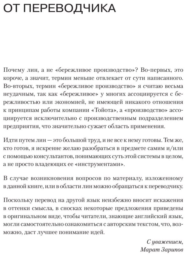 "Лин" от английского lean production дословно на русский переводится, как "бережливое производство". Однако в русском языке слово бережливый ассоциируется с экономией - бережливым отношением к деньгам, в то время как суть lean production в концепции управления каким либо производством, основанном на постоянном стремлении к устранению каких либо потерь, оптимизации каждого сотрудника и ориентацию на потребителя. Все строится на примере компании Toyota, когда производитель превзошел американские авто по качеству и цене, хотя начинал с низкокачественных автомобилей. Однако эта книга имеет большой круг аудитории, она предназначена для всех, кто связан с финансами, руководителей предприятий и лин-лидеров - менеджеров, стремящихся к оптимизации и совершенствованию. В целом система Лин - оптимизация компании на каждом этапе, не важно практикует она уже много лет или только начала свой путь развития. Лин можно описать по-разному, но вся его сущность как раз таки отражена в книге на личном опыте автора - финансового директора. Автор знакомит читателя с лин-системой, которой он советует придерживаться всем компаниям.