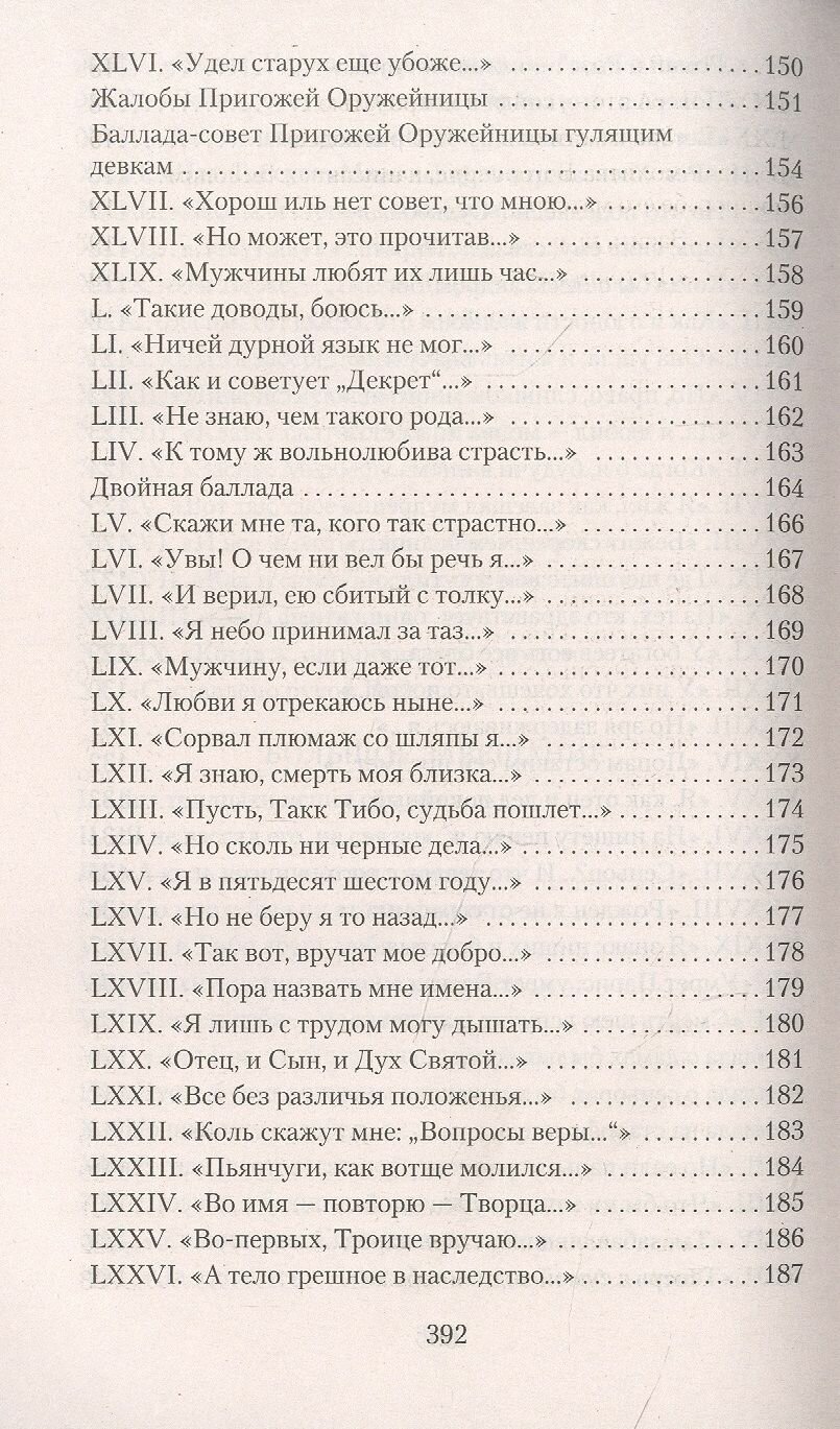 В сборник включены все произведения поэта, написанные им на литературном французском, и семь из тринадцати баллад на воровском (цветном) жаргоне в переводе Ю. Б. Корнеева.
