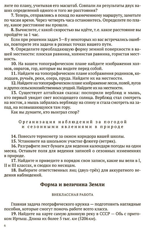 Знание географии необходимо для каждого ребенка. Изучая этот предмет, он узнает много полезного и о собственной стране, и об особенностях других стран и народов. Эта наука помогает развить мышление и лучше понять, как именно человек связан с природой. Но чтобы хорошо знать географию, необходимо ее хорошо изучить — а это нелегкая задача. Ведь для качественного обучения недостаточно просто прочесть учебник — нужна практика. Это экскурсии, увлекательные задания для работы дома и на улице и даже географические игры, загадки и шарады. Эта книга — пошаговое методическое пособие по обучению ребенка географии, составленное опытными советскими педагогами. В нем вы найдете множество несложных идей для увлекательного изучения географии вместе с ребенком: например, как из обычной прогулки сделать настоящее исследование.