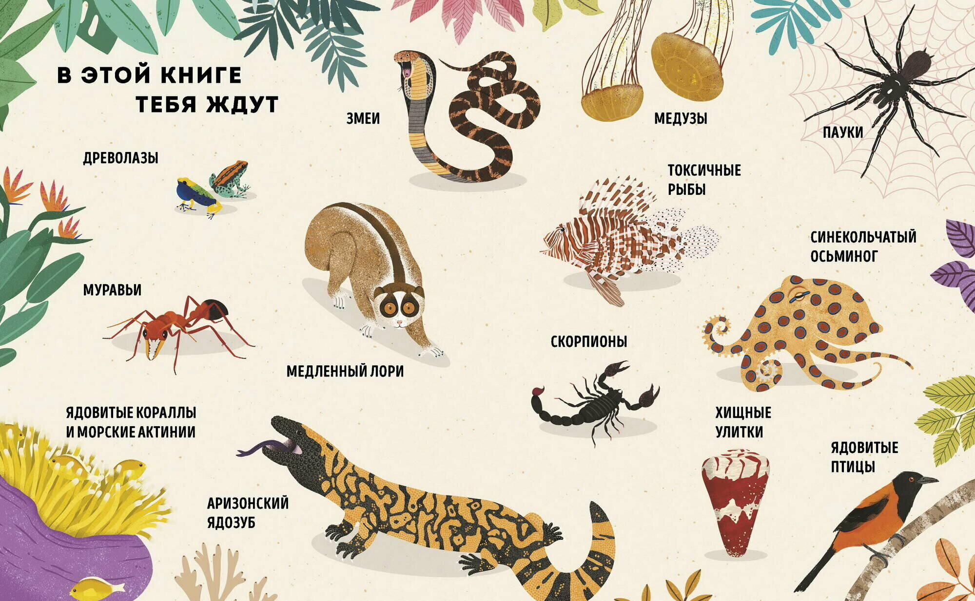 Яркая познавательная новинка МИФа содержит удивительные и интересные факты про различные яды и их носителей в животном мире, использующих яды для защиты или добывания пищи.