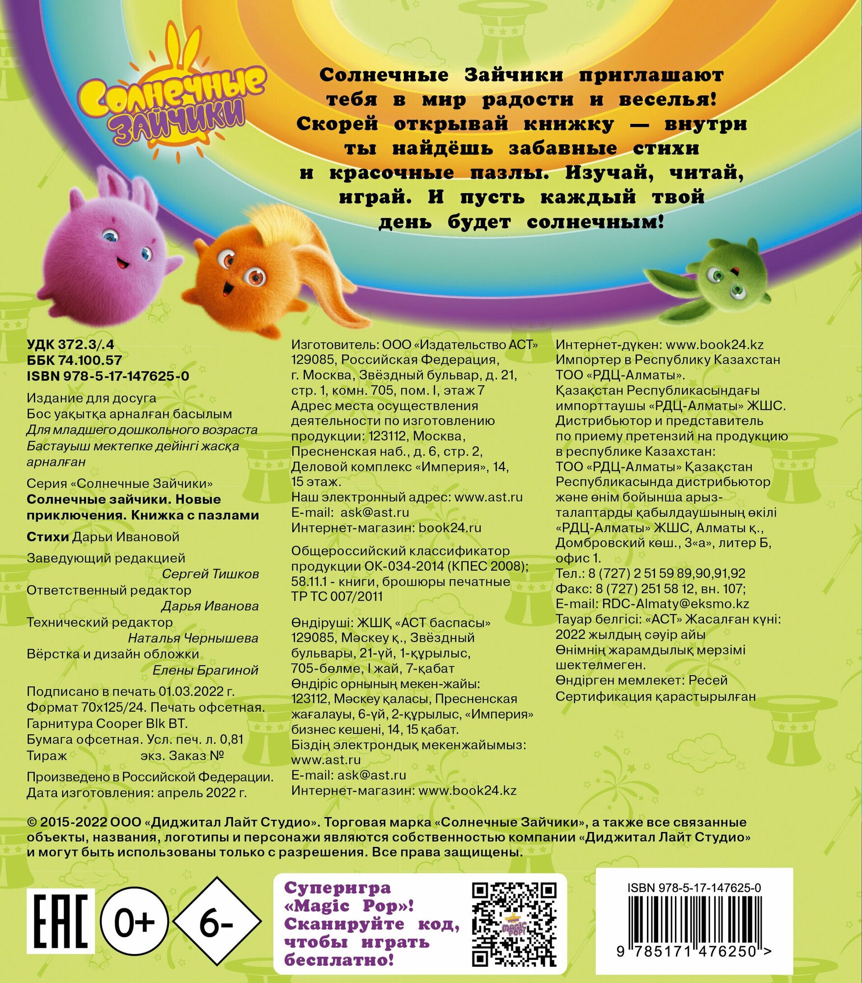 Сервис сравнения цен СкидкаГИД предлагает сравнить цены на товар «Книга: Солнечные Зайчики. Новые приключения. Книжка с пазлами (Иванова Дарья Максимовна); ИЗДАТЕЛЬСТВО "АСТ", 2022»