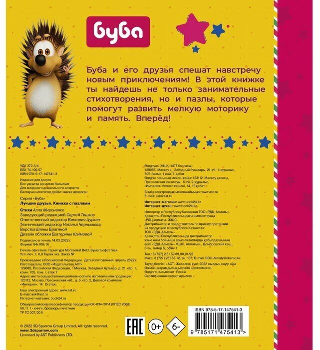 Буба и его друзья спешат навстречу новым приключениям! В этой книжке ты найдешь не только занимательные стихотворения, но и пазлы, которые помогут развить мелкую моторику и память. Вперёд!