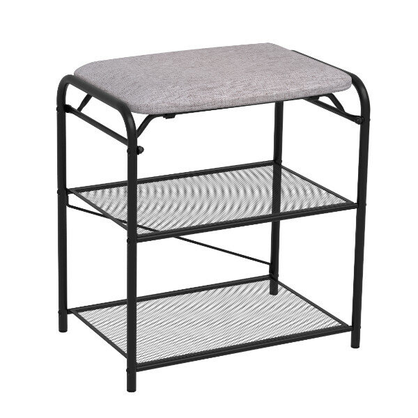 Подставка Гранада — компактная модель, призванная выполнять функции сразу двух предметов интерьера: двухъярусной обувницы и банкетки. Снимая или надевая обувь, вы сможете с удобством устроиться на сиденье, которое — несмотря на изящный вид изделия — выдержит вес до 120 кг. На полках из прочной металлической сетки разместится несколько пар туфель, ботинок, босоножек. Смотрится этажерка воздушно и элегантно, минимализм конструкции смягчают плавные закругления. Окраска металлических элементов гармонично сочетается с приятным оттенком обивки, изготовленной из рогожки — практичного износостойкого материала.