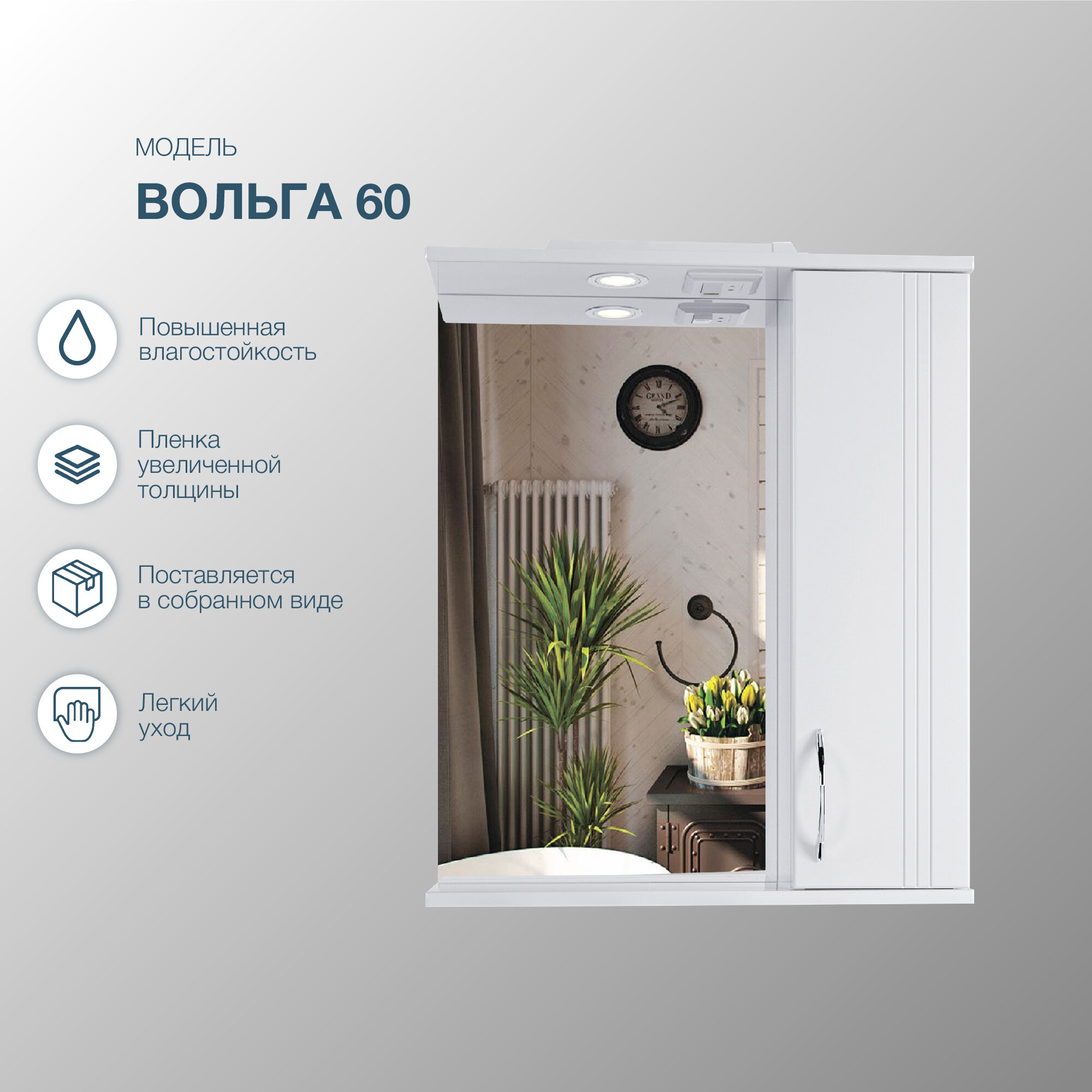 | Расположение подсветки | встроенная над зеркалом |