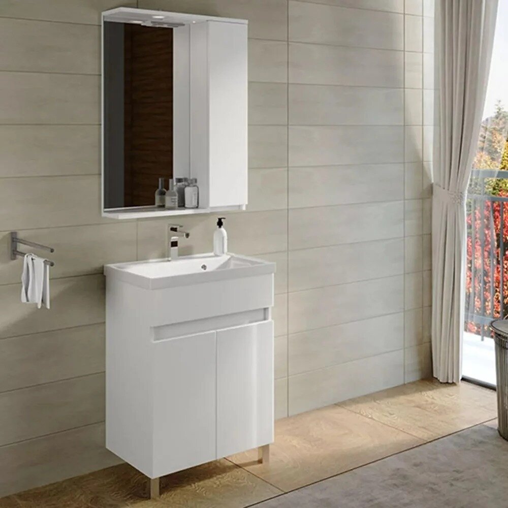 Зеркальный шкаф подвесной SanStar Квадро 60 для ванной комнаты белый Hoff