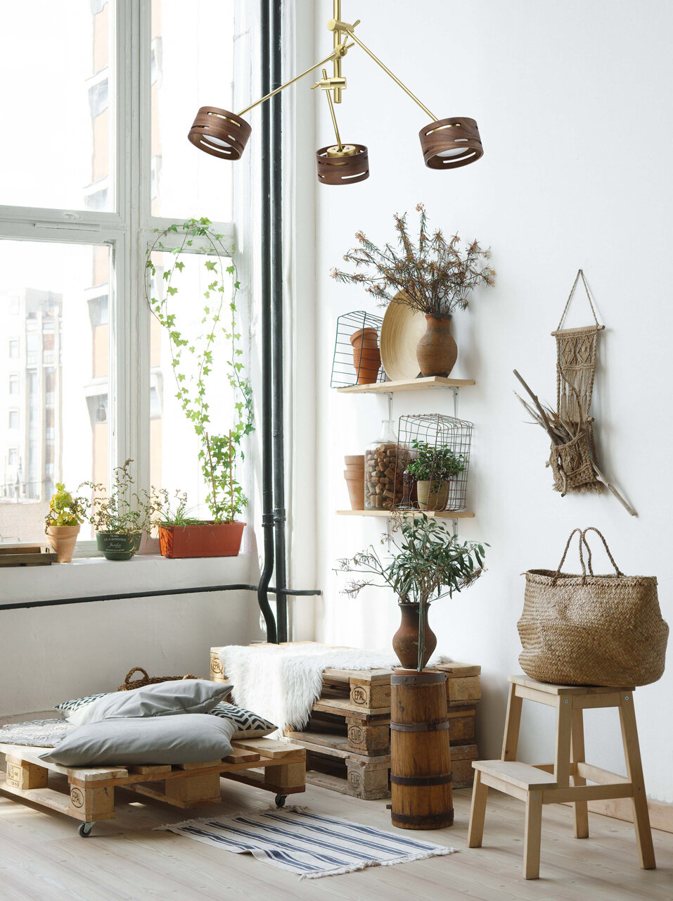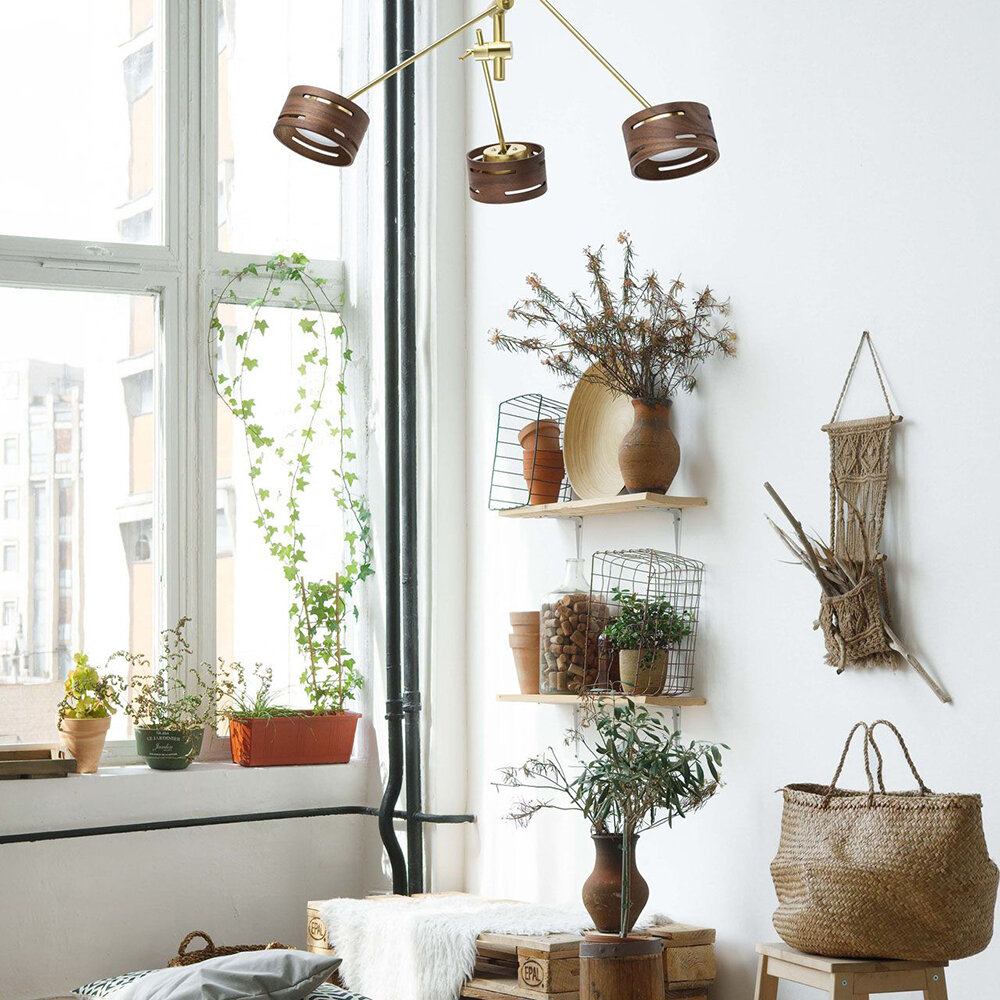 Потолочное крепление позволяет размещать светильник в помещениях стандартной высоты.Брутальный дизайн актуален в наиболее популярных современных интерьрах.Имеет механизм поворота рожков и наклона плафонов.Декоративные плафоны выполнены в стиле резной бересты, изготовлены из древесного материала.Встроенные светодиодные источники света обеспечивают большую площадь освещения ровным светом, создает световой узор за счет частично проходящих через резьбу плафонов лучей.Имеет три режима освещения 100%-50%-25%.Полная семья светильников потолочного, настольного и напольного типа позволяет создать комплексное освещение.