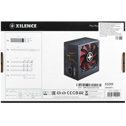 Блок питания Xilence Performance A+ III Series XN084 [XP650R11] — это функциональное и производительное решение, которое может лечь в основу игровой или рабочей сборки. Номинальная мощность и мощность по линии 12 В составляет 650 Вт, что обеспечивает широкие возможности для конфигурации универсальной компьютерной системы. Отличительной особенностью модели является высокая надежность и безопасность использования, обусловленная наличием различных защит. Также в конструкции есть полупассивная система охлаждения, представленная вентилятором на 120 мм. Блок питания Xilence Performance A+ III Series XN084 [XP650R11] выполнен в корпусе формата ATX и имеет длинные кабели, что способствует удобному и простому подключению. Для подачи основного питания используется разъем (20+4)-pin. Подключение процессора осуществляется через 1 выход (4+4)-pin, а видеокарты — через 2 коннектора (6+2)-pin. Также модель оснащена 6 портами на 15-pin для SATA-устройств и 3 разъемами Molex. Блок питания поставляется вместе с сетевым кабелем.