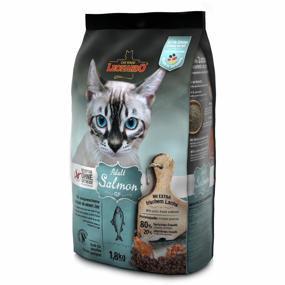 - Сухой беззерновой корм для кошек Leonardo Adult Salmon GF