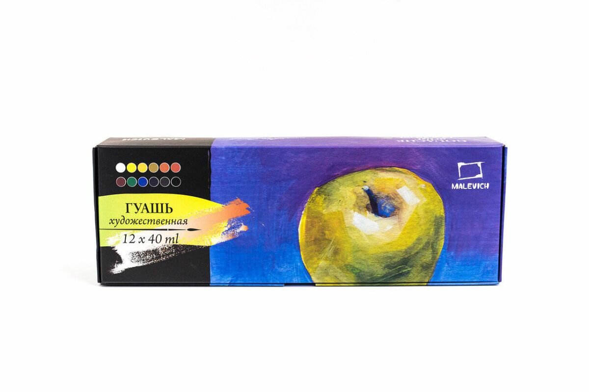Малевичъ Гуашь 12 цветов по 40 мл