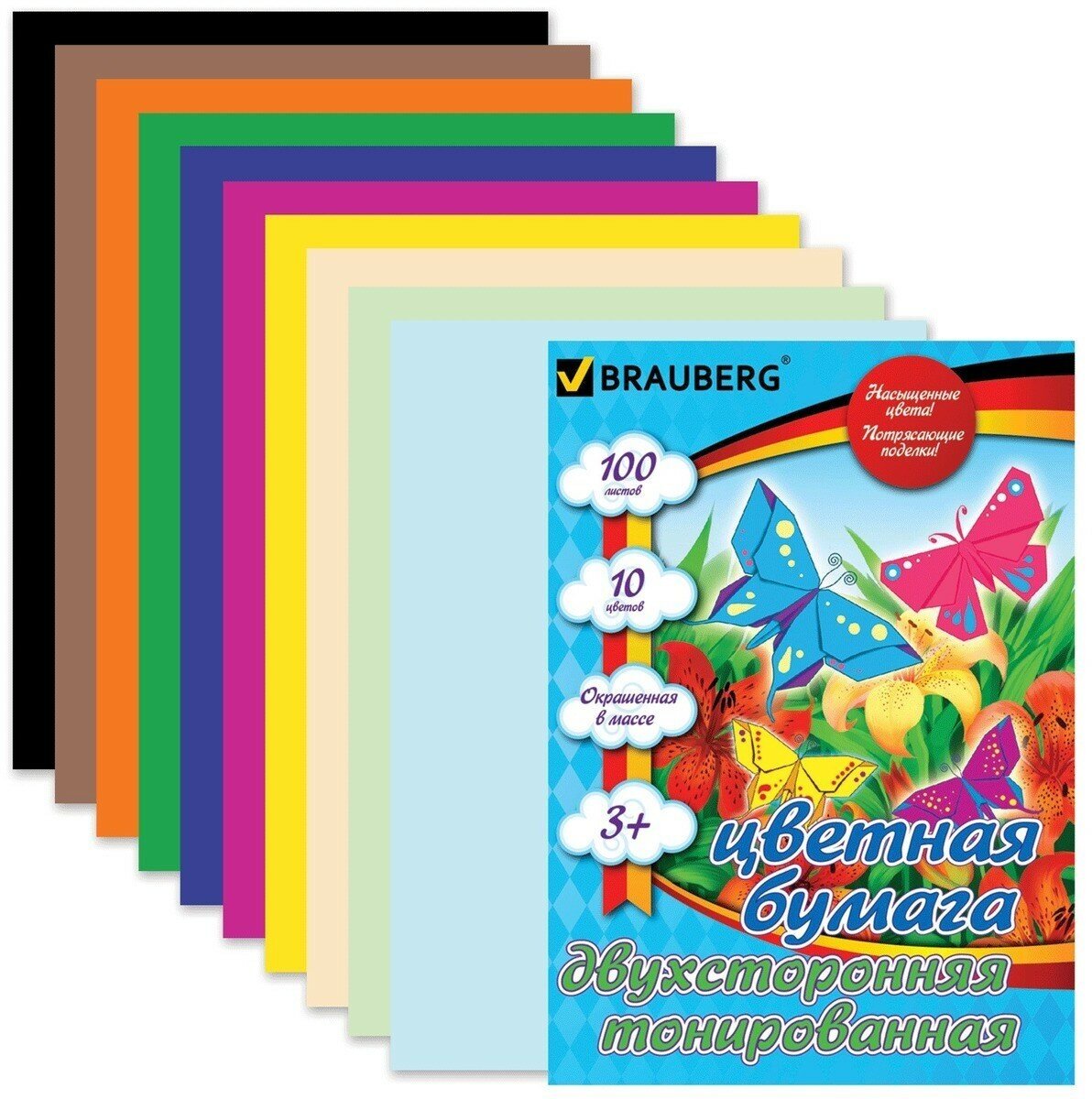 Цветная бумага Brauberg 124715 А4 10 цветов... Цветная бумага А4 тонированная в массе 10 цветов 100 листов