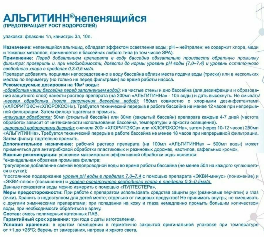 Модель: Альгитинн непенящийся Жидкость для борьбы с водорослями 1 л