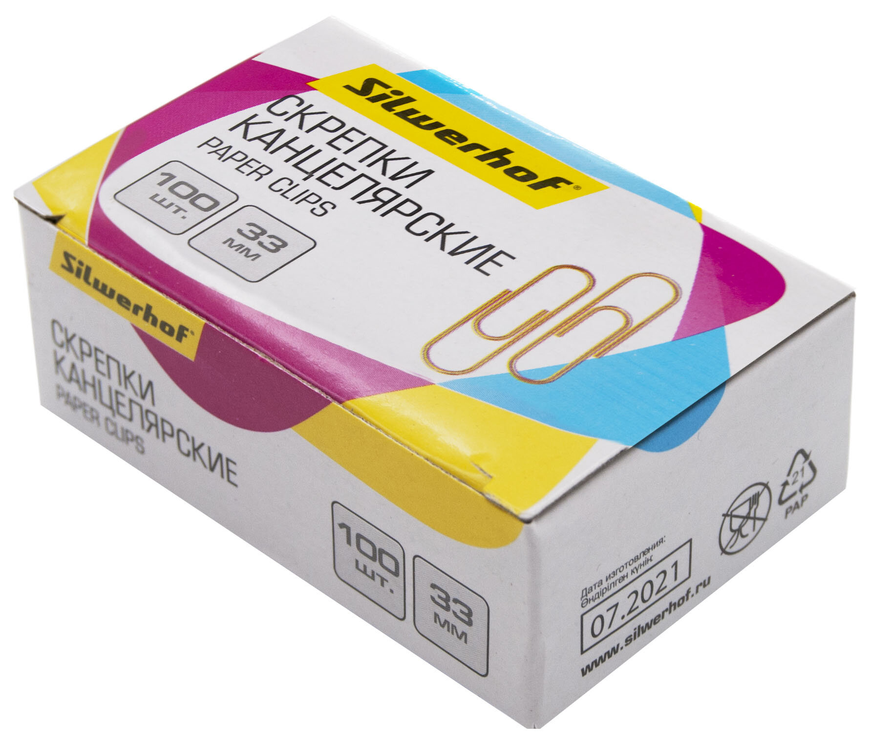 Скрепки канцелярские (33 мм 100 штук золотистые) (491035) Silwerhof