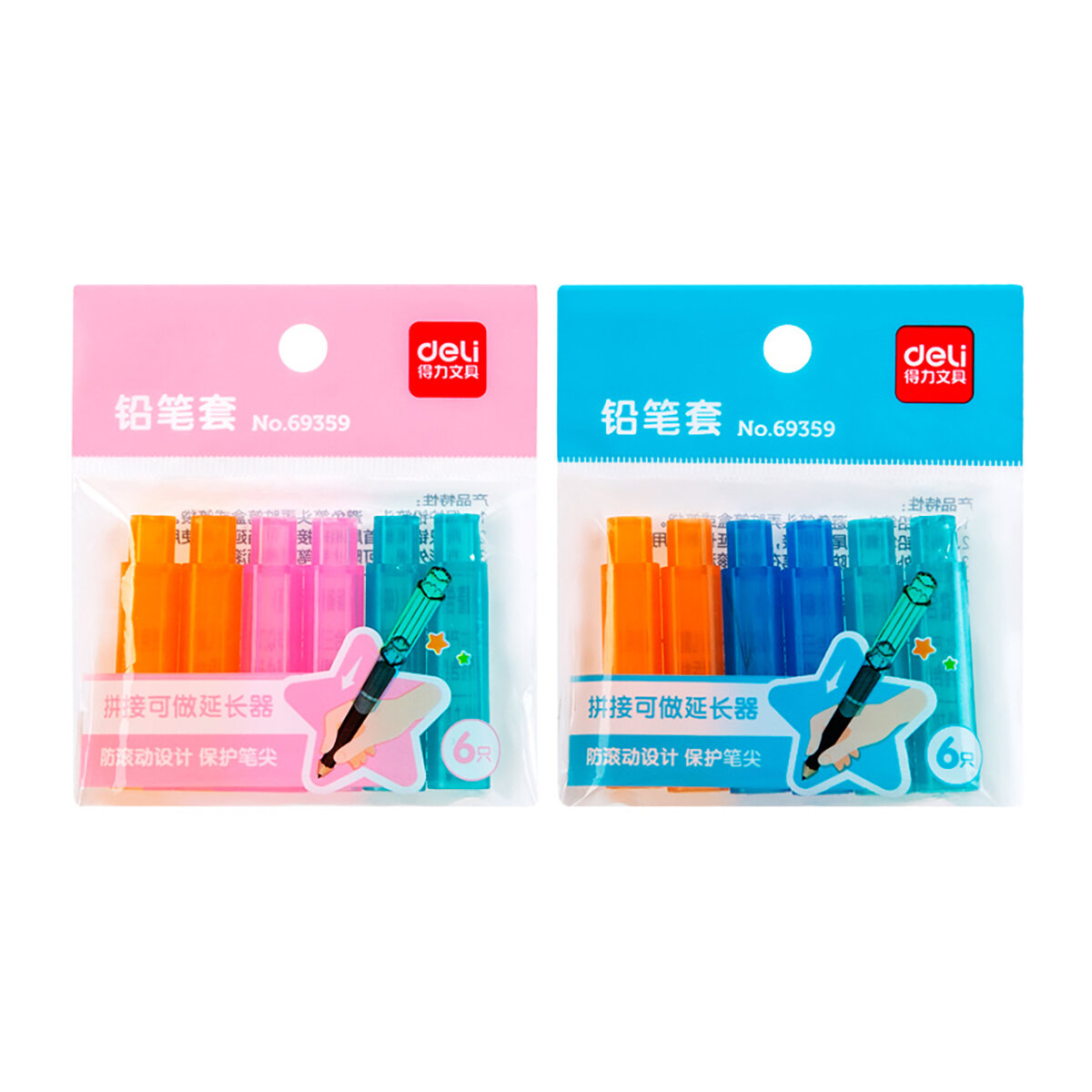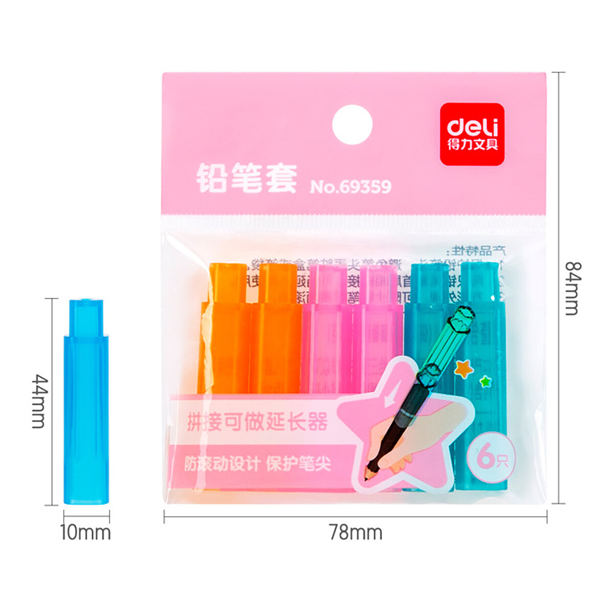 Колпачок-манжета для чернографитных карандашей 6 штук цвет ассорти (69359) DELI