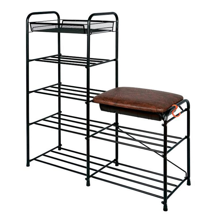 Подставка для обуви ЗМИ 5-ти полочная 90 с сиденьем с ящиком черный Hoff