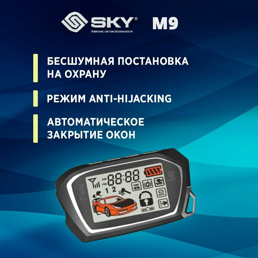 Бюджетная автомобильная сигнализация SKY M9 обеспечит автомобиль стандартным набором охранных функций. Это несколько режимов постановки на охрану, Anti-Hijacking, сервисный режим «Валет» и многое другое.